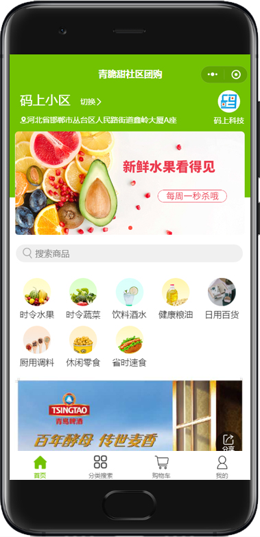 河北碼上科技簽約開發(fā)青脆甜小程序,利用社區(qū)的人員的集中性和對日常生活用品等的需求性加上微信的便捷成功開發(fā)社區(qū)團(tuán)購系統(tǒng)。方便快捷的方式為商家?guī)砀嗟挠?br />