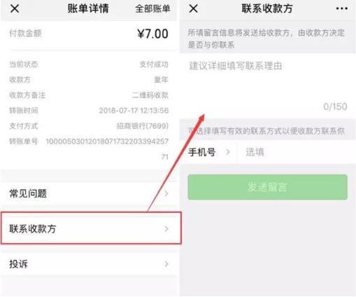 邯鄲微信開發),就可以通過這個支付記錄里的「聯系收款方」給司機留言。