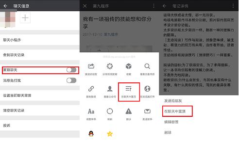當你正在閱讀一篇文章的時候,突然有信息要回復的話,可以先將文章置頂,等其他事情都處理之后,在聊天頁面直接打開重新閱讀就可以了,節省了再去找這篇文章的時間。
