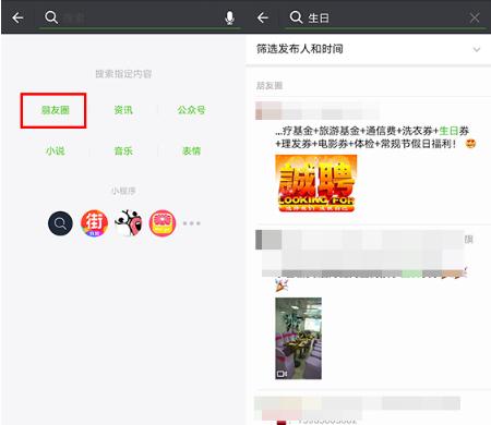 不管是群還是個人聯系人,你都可以點擊右上角,然后選擇【查找聊天內容】,根據記憶搜索相關內容,無需盲目查找;同樣的,在微信頂部的搜索框中,也能根據需要,按照分類,搜索查找相關內容,比如搜索朋友圈中包含“生日”的信息;搜索包含“小程序”的文章等等;另外,在一篇已經打開的微信文中,點擊右上角的三個點,再點擊底部的【搜索頁面內容】,從而找到包含相關關鍵詞的內容。