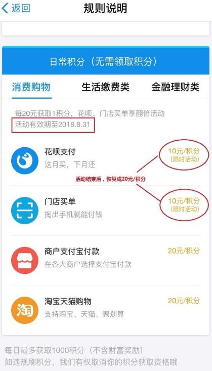 從支付寶的官方通知中可以看到,花唄、門店買單的積分翻倍活動將于8月31日到期。對于支付寶積分有重度依賴的同學不算是個好消息,而對于手中持有多行信用卡的朋友沒有太大影響,畢竟消費領域的各項福利你們幾乎都能囊括。