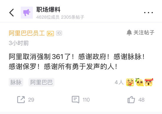 12 月 28 日消息,今日早間,阿里巴巴集團 CPO 童文紅在內部論壇宣布,將取消強制“361”考核制度,不再強制直屬領導給 10% 員工 3 分-3.25 分的績效評級。阿里巴巴集團員工向鳳凰網科技證實了該消息。
