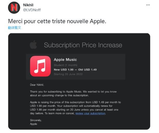 蘋果給南非學生訂閱用戶的一封電子郵件中寫道:“感謝您訂閱 Apple Music。我們想讓您知道此訂閱即將發生的變化,這項訂閱的價格將從每月 1.49 美元提高到每月 1.99 美元。”