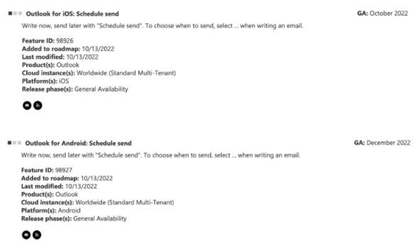 根據微軟 365 路線圖頁面,微軟正計劃將“安排和發送”功能帶給安卓和 iOS 用戶,使他們能夠延遲發送郵件。IT之家獲悉,該功能與 Outlook.com 和 Outlook 桌面應用中的“延遲發送”功能非常相似。