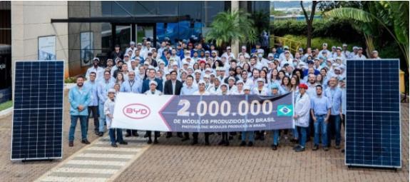 從比亞迪獲悉,比亞迪能源巴西分公司(以下簡稱“比亞迪”)光伏組件累計產量近日突破 200 萬塊。