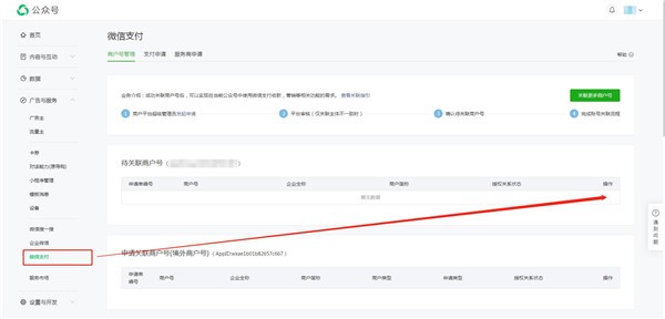 4.點(diǎn)擊提交后,此時(shí)這個(gè)AppID還屬于待同意的狀態(tài),需要到授權(quán)的公眾號(hào)或小程序后臺(tái)的微信支付頁面里的待關(guān)聯(lián)商戶號(hào)中點(diǎn)擊同意即可關(guān)聯(lián)成功。