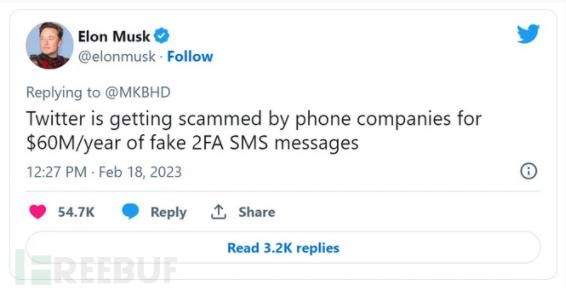 短信驗(yàn)證帶來(lái)的安全隱患已經(jīng)持續(xù)了很久,埃隆·馬斯克(Elon Musk)指出,僅僅在假冒 2FA 短信上,每年損失約 6000 萬(wàn)美元。