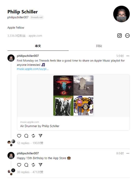 該媒體日前在 Threads 平臺上發現了名為 PhilSchiller007 的賬號,自稱是蘋果院士菲爾?席勒。