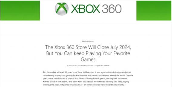 近日,微軟宣布將在 2024 年 7 月 29 日正式關閉 Xbox 360 線上游戲商城,這意味著,明年的 7 月 29 日后,玩家將無法在 Xbox 360 商城購買游戲、DLC 及其他娛樂內容,不過所有向后兼容 Xbox One 或X/S系列的 Xbox 360 游戲和 DLC 仍可在 Xbox One 或 Xbox Series 商城購買。