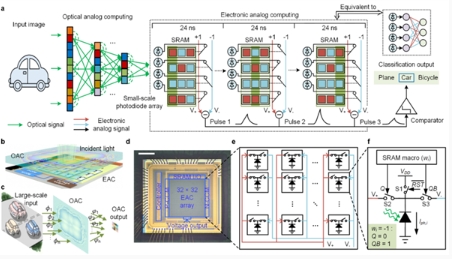 結合基于電磁波空間傳播的光計算,與基于基爾霍夫定律的全模擬電子計算,在一枚芯片上突破了大規模計算單元集成、高效非線性、高速光電接口三個國際難題。