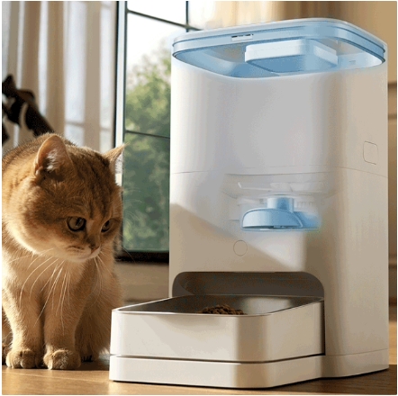 這款產(chǎn)品配備 5L 儲(chǔ)糧桶,可一次性放入約 2.5kg 貓糧,供一只成年貓咪吃 30 天;配備稱重喂食碗,實(shí)時(shí)檢測(cè)碗內(nèi)余糧,重量誤差不超過 1g;搭配自研算法,動(dòng)態(tài)計(jì)算寵物進(jìn)食克數(shù)。