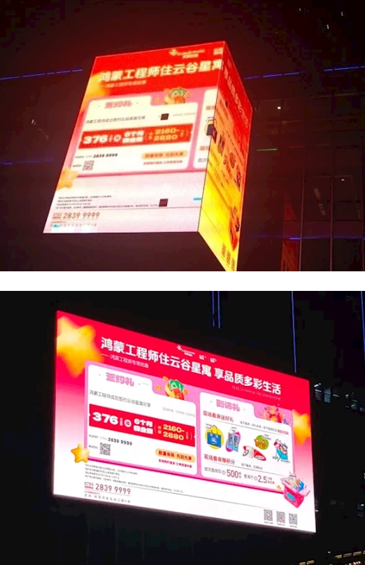 最近有熱心網友發現,在深圳市龍崗區的某科技產業園,多出了一些醒目的廣告牌。不管是電梯旁,還是各個燈箱廣告櫥窗,甚至樓外的大型LED展示屏,都被這則廣告“霸屏”了。現在大家伙兒都知道了——鴻蒙工程師,租房有優惠!
