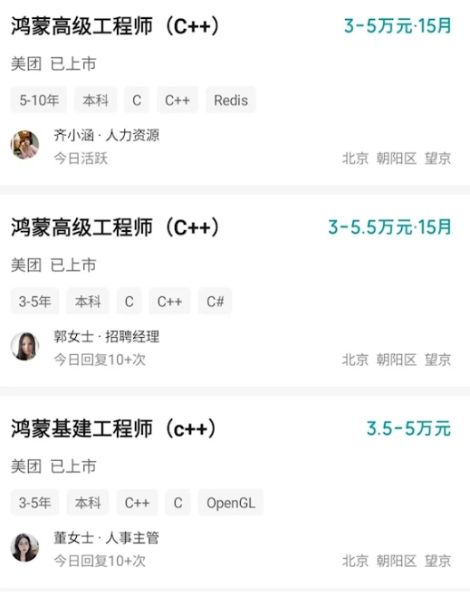 拿美團來說,甚至開出了月薪30-55k且15薪的高工資來吸引鴻蒙開發者。這都說明鴻蒙開發者已經成為了新的就業風口。