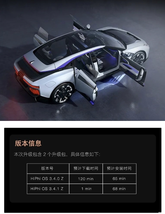 高合汽車 21 日宣布為 HiPhi Z 車型帶來新一輪 OTA 升級,包含 HiPhi OS 3.4.0 Z 和 3.4.1 Z 兩個升級包,預計下載時間 121 分鐘、安裝時間 133 分鐘。