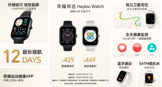本次榮耀新品發(fā)布會還帶來了榮耀親選Haylou Watch智能手表,它采用1.95英寸輕薄全面屏,集成獨立衛(wèi)星定位、120種運動模式及心率、血氧、睡眠監(jiān)測健康功能,支持12天超長續(xù)航。12月24日新品首銷,售價449元。消費者可通過榮耀商城、榮耀親選商城、榮耀京東自營旗艦店、榮耀天貓官方旗艦店、榮耀體驗店、榮耀各大授權(quán)門店等多渠道進行購買。