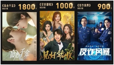 都市愛情微短劇《盲心千金》項目分賬達1800萬;都市劇情愛情微短劇《見好就收》項目分賬突破1000萬;電信詐騙類型網絡短劇《反詐風暴》項目分賬900萬;還有兩部主打甜寵的微短劇《只是離婚的關系》和《結婚嗎?好的》各自項目分賬800萬。