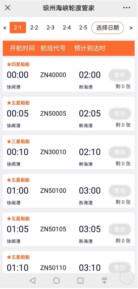 預訂平臺顯示,近期徐聞港至??诘男履茉窜囆推币咽弁?。平臺截圖