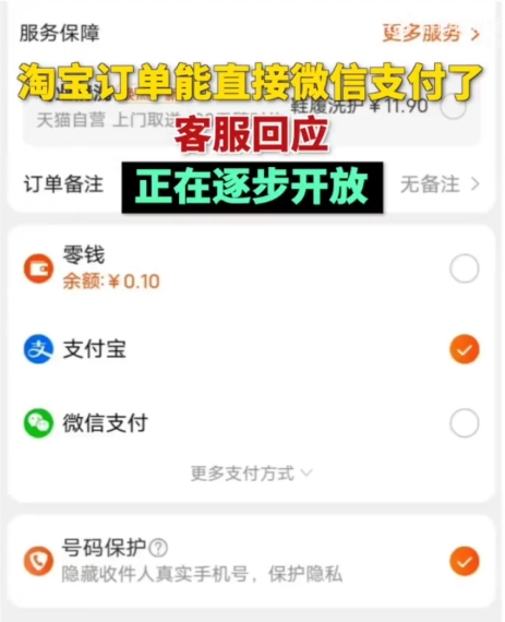淘寶客服回應稱,微信支付目前僅針對部分用戶逐步開放,且僅支持購買部分商品時可選擇。不過淘寶客服也提到,淘寶后續將逐步全部進行覆蓋,而且“這個時間不會太長”。