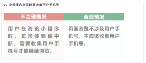 2、不得在小程序內(nèi)瀏覽時(shí)收集用戶手機(jī)號(hào)。