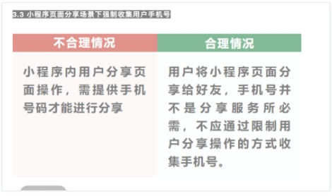 3)小程序頁(yè)面不得在分享場(chǎng)景下強(qiáng)制收集用戶手機(jī)號(hào)。
