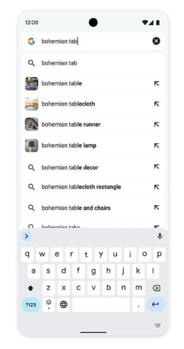 在 Android 和 iOS 上,Chrome 瀏覽器現在會根據更簡單的搜索(如“波西米亞風格餐桌”),顯示更廣泛的購物類別和產品的有用圖片。