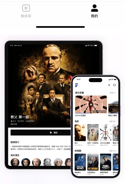 功能方面,目前這款應用界面比較簡單,只有媒體庫和我的兩個選項卡,在綁定阿里云盤。百度網盤的媒體庫之后即可觀看視頻,界面支持按鈕式橫屏切換、倍速、10 秒快進 / 后退、音軌選擇、字幕選擇,暫不支持在線字幕。