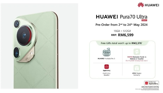 華為 Pura 70 Ultra(16+512GB 版本):6599 林吉特(當(dāng)前約 10030 元人民幣),預(yù)購(gòu)?fù)瑯涌上韮r(jià)值 2376 林吉特的禮品。
