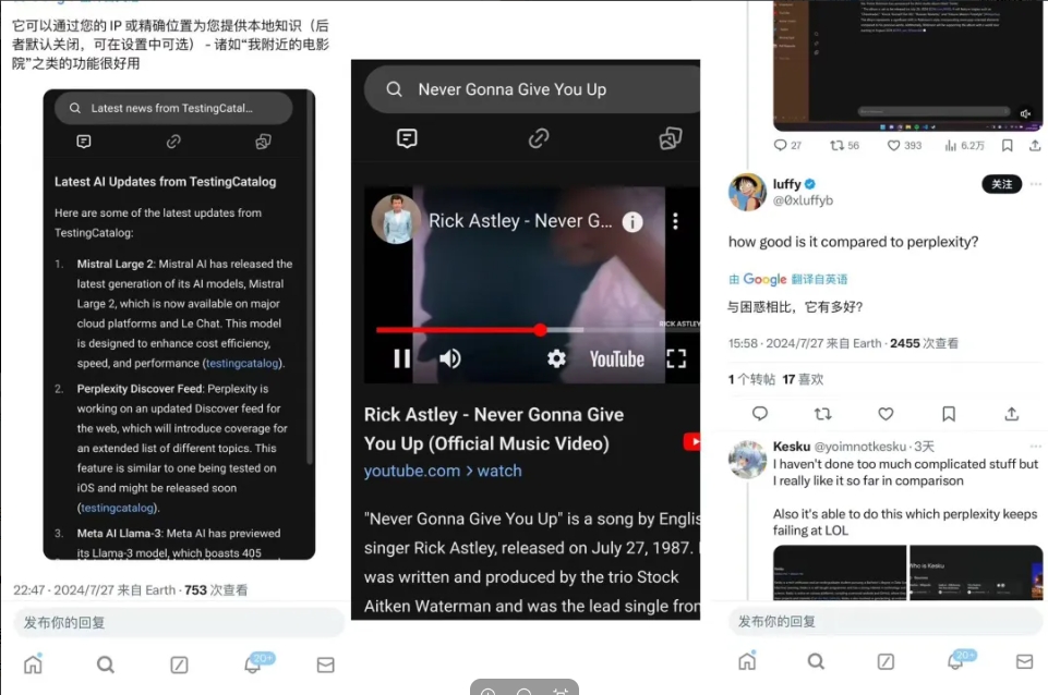 在評論區有網友發問“和perplexxity相比,它有多好?”kesku演示了一個案例,即分別問SearchGPT和perplexxity“誰是Kesku”,前者能做到而后者一直失敗,因此他說雖然還沒有做特別的事,但相比之下目前喜歡SearchGPT。